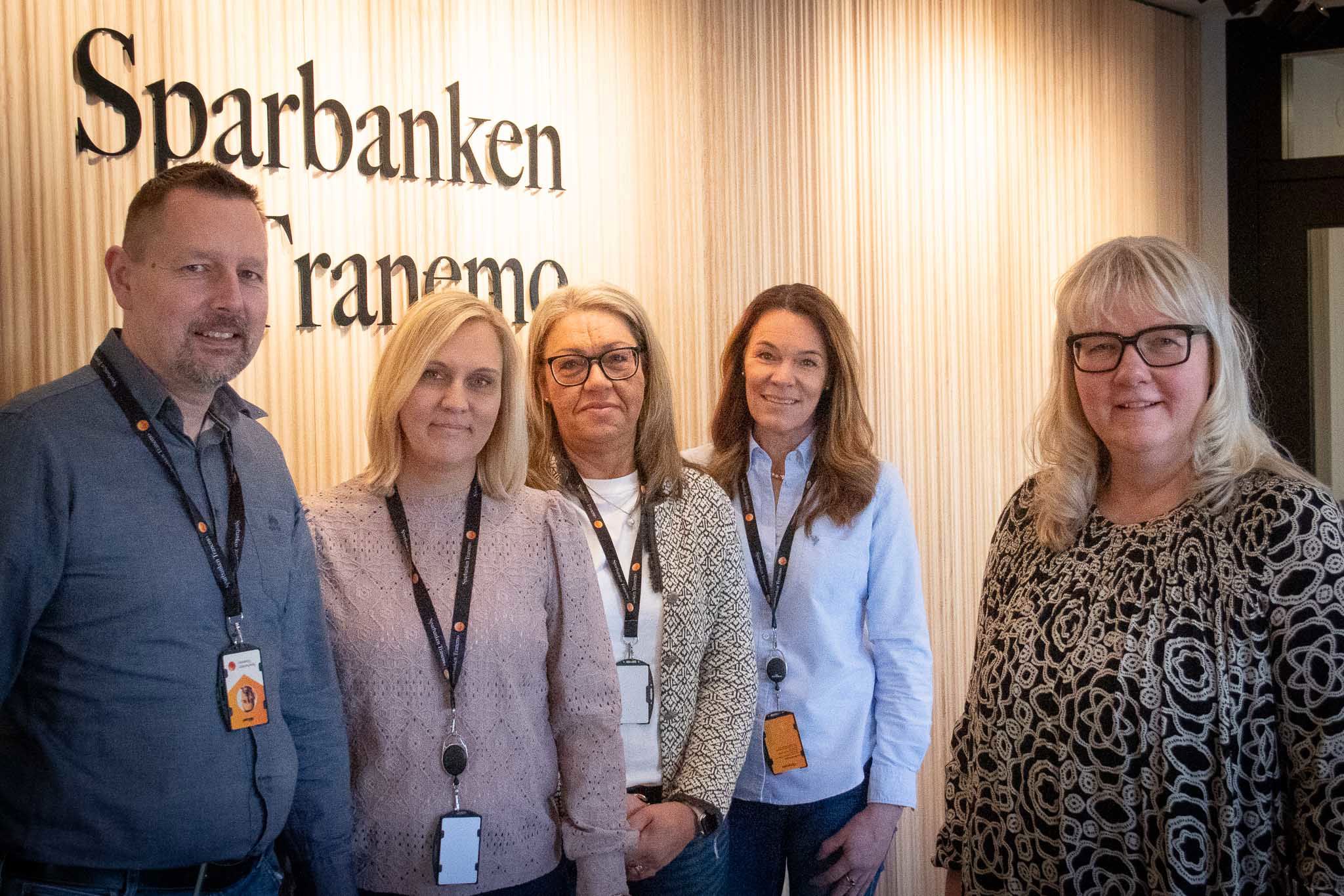 Från vänster på översta bilden ser vi personalen på Gnosjökontoret: Mikael Sjöberg, Adine Brandö, Carola Schultz, Christina Ottosson och Annika Lidh.
