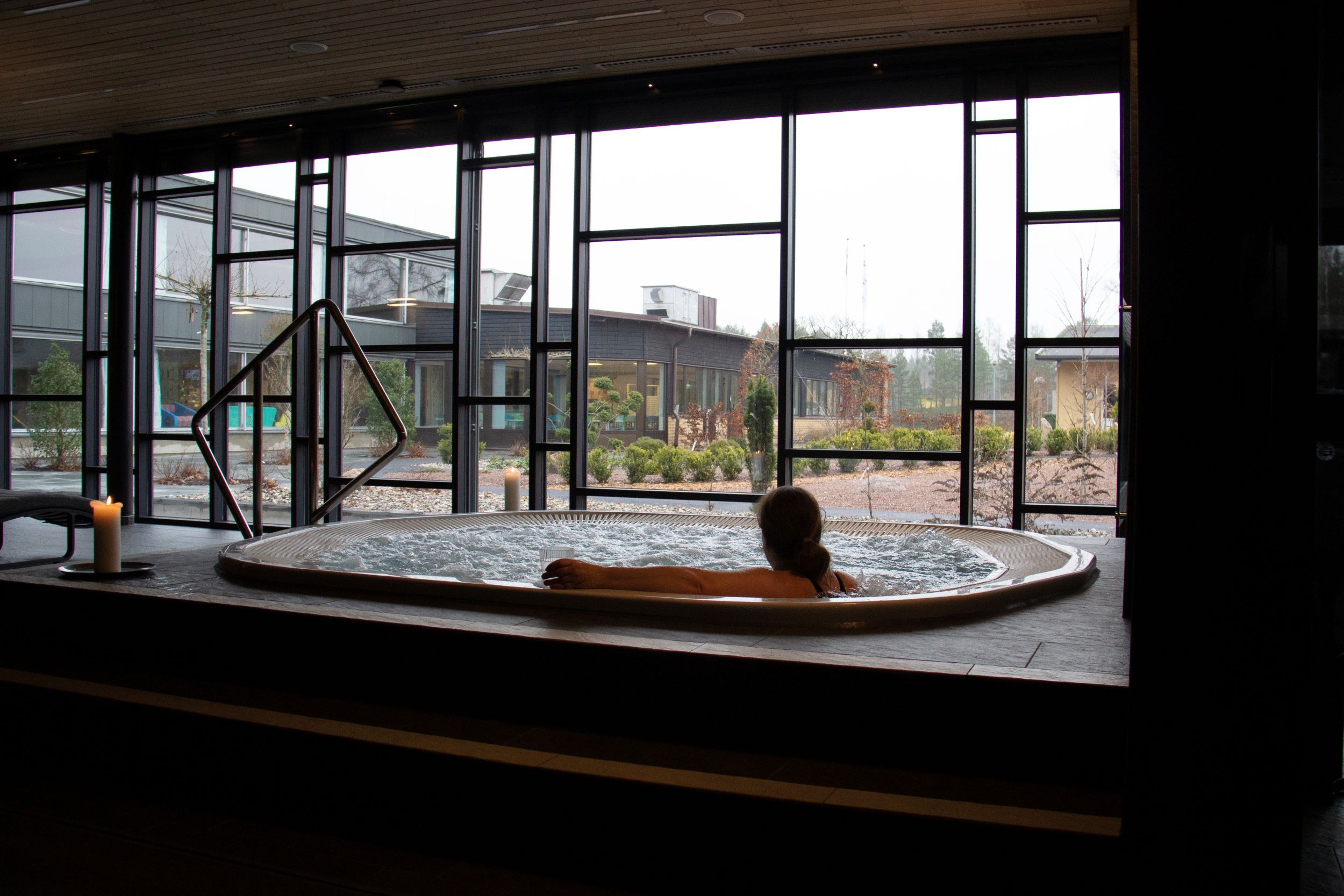 I en rogivande miljö får ni tillgång till bubbelpool, bastu, kallbad, kneippbad, upplevelsedusch och fotbad – allt designat för att ge maximal avkoppling och återhämtning. Från relaxen har ni utsikt över den anlagda trädgården, som skapar en harmonisk inramning för er vistelse.